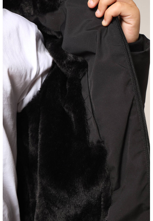 Warm boy's down jacket with hood and soft lining