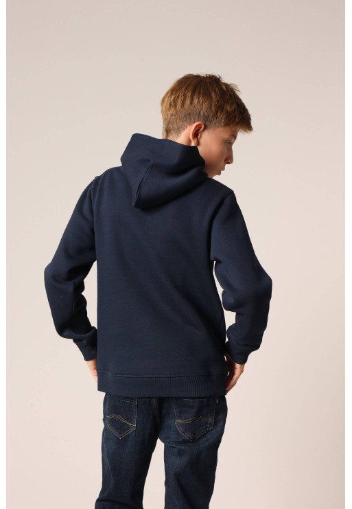 Boys' fleece hoodie with "DEELUXE ORIGINAL" embroidery and kangaroo pocket.