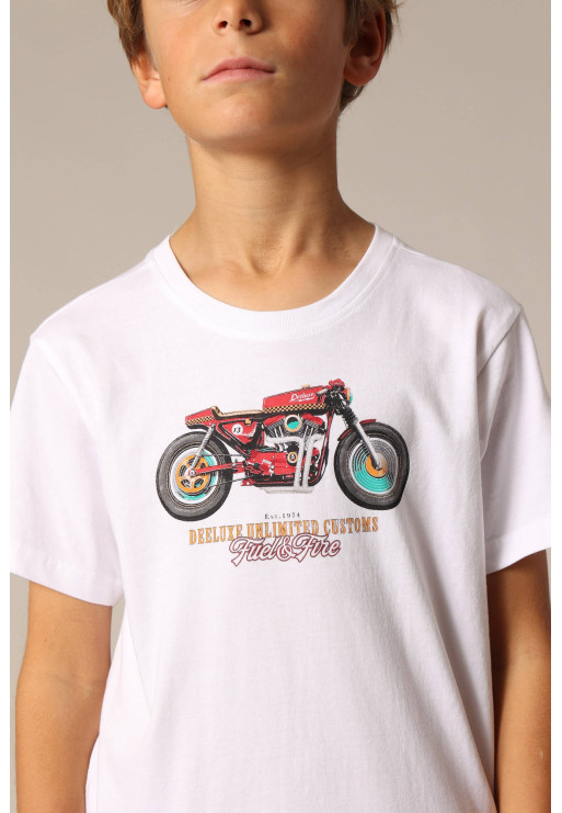 Boy's crew neck t-shirt with vintage motorcycle print on the front