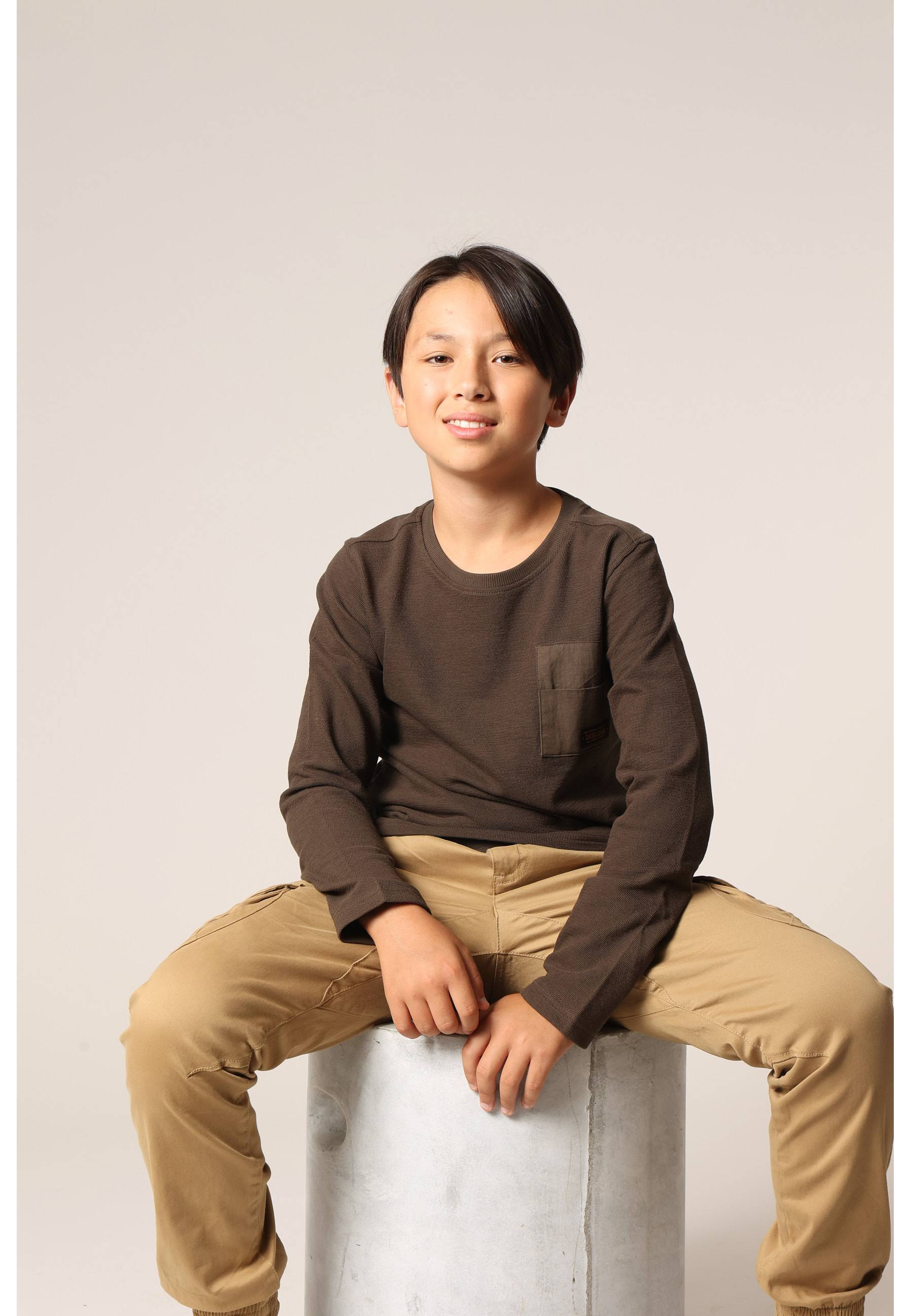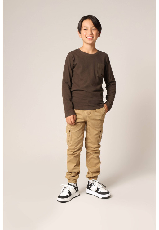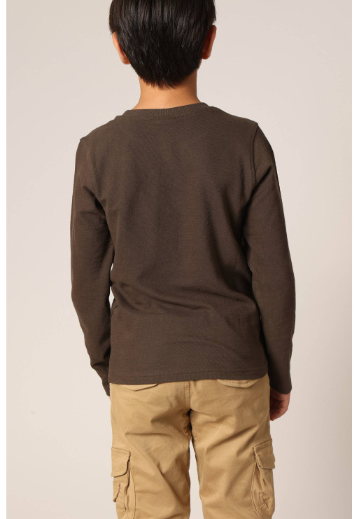 Boys' 100% cotton long-sleeved T-shirt with contrasting chest pocket.