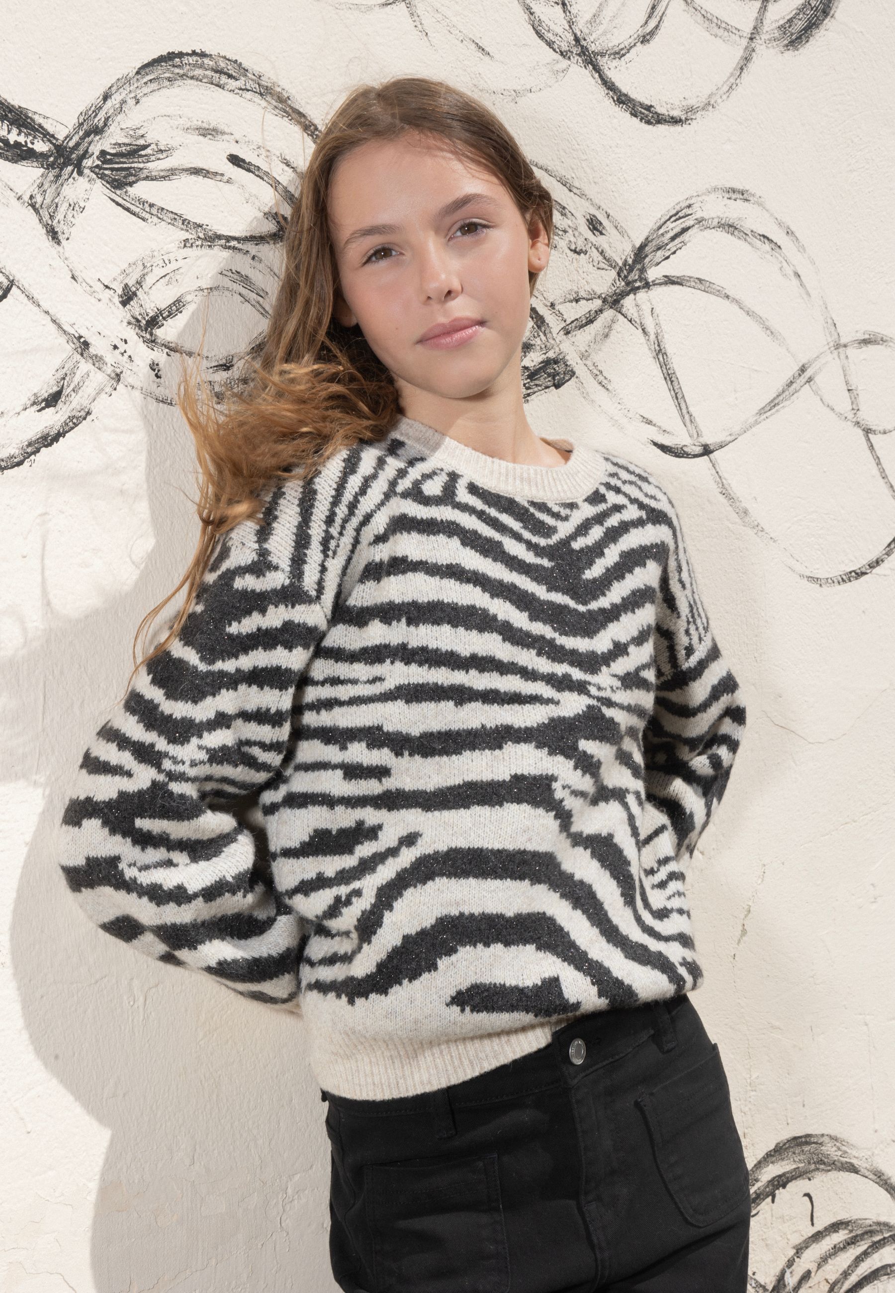 Girls' zebra print sweater in warm and comfortable knit