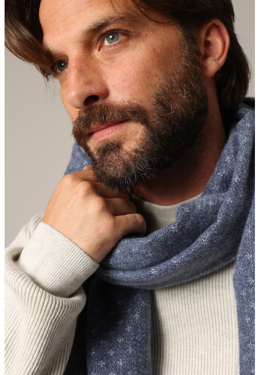 This lightweight scarf seduces with its discreet and refined pattern, subtly dotted with small light dots reminiscent of a starry sky. Its soft material offers immediate comfort as soon as it is placed on the shoulders.