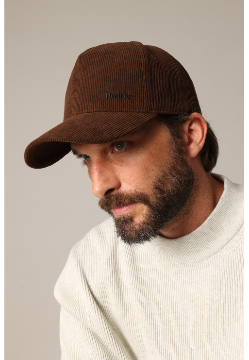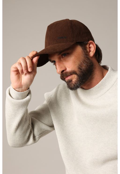 Corduroy cap with a curved visor and a tone-on-tone embroidered logo on the front.