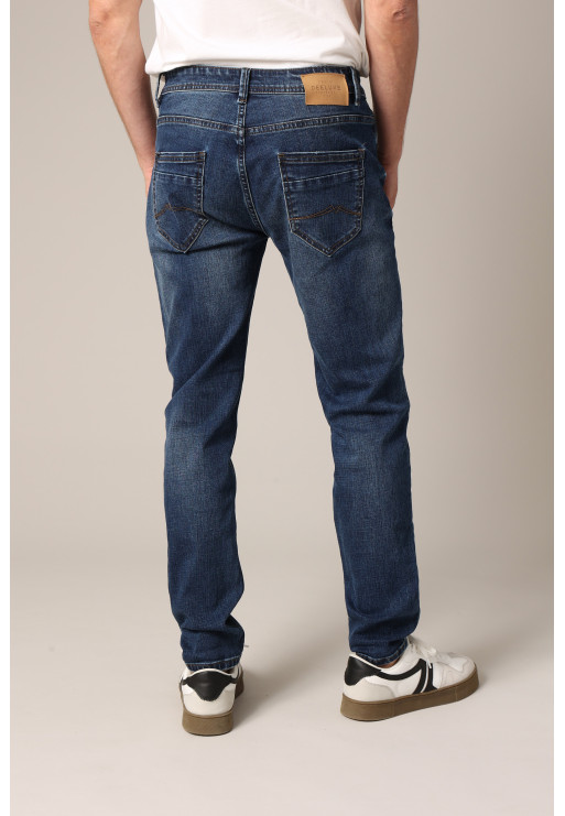 These slim-fit jeans strike the perfect balance between casual and sophisticated. Their fitted cut flatters the figure without constricting. With their mid-blue hue and light distressing, these jeans evoke a vintage aesthetic without compromising on comfort. Perfect for a casual-chic look, they feature wide belt loops, classic slant pockets, and fine stitching.