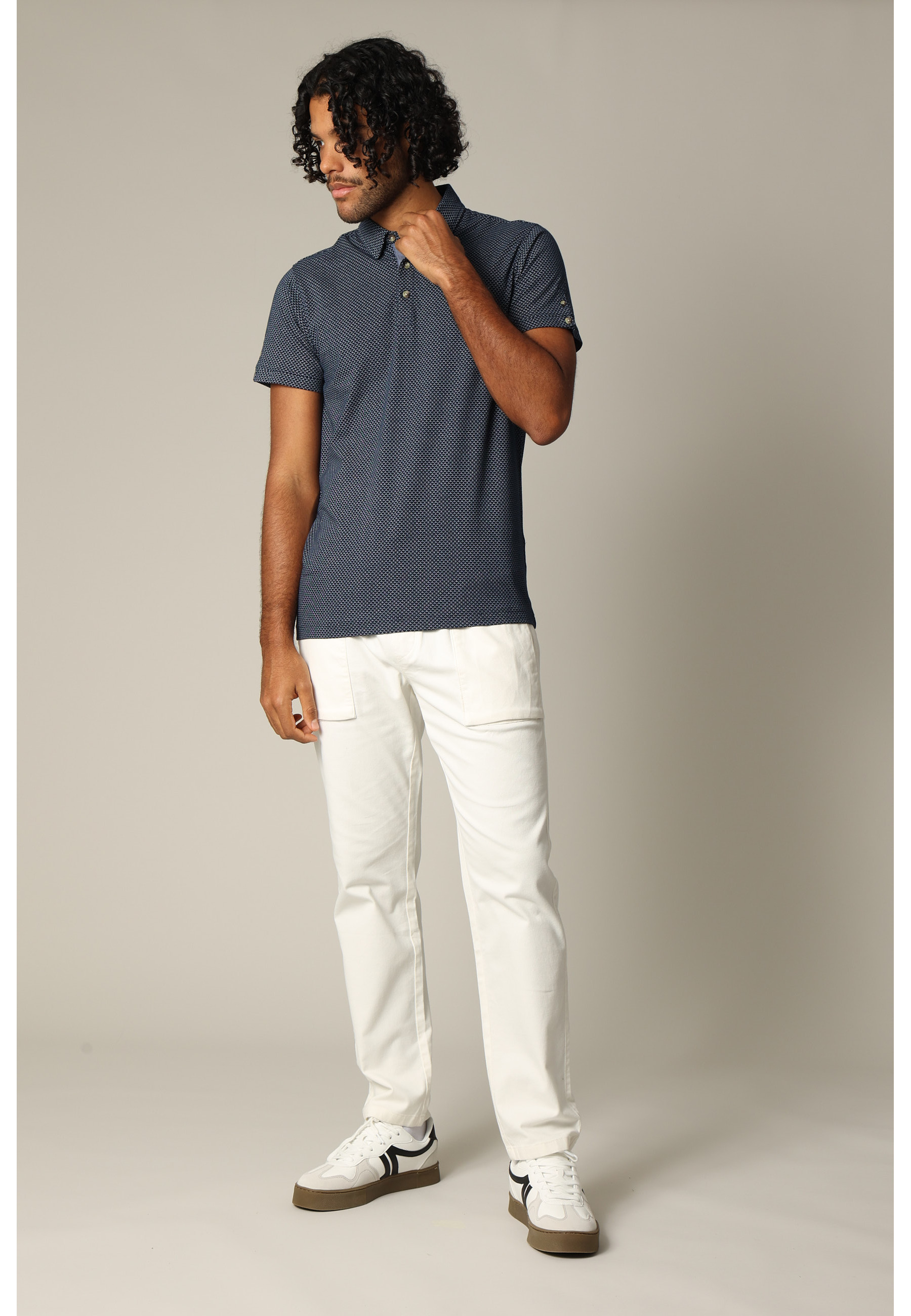 PATTERNED AND SHORT-SLEEVED POLO SHIRT FOR MEN