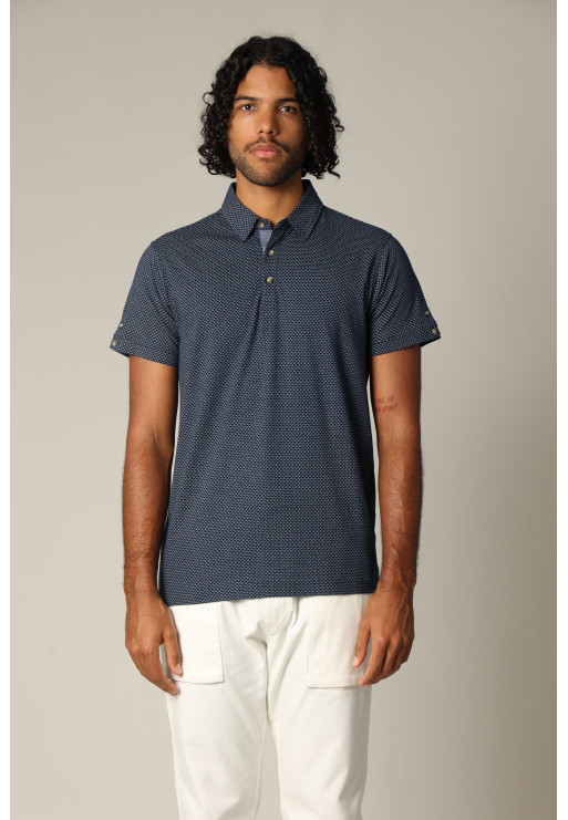 Made from quality jersey fabric, this polo shirt features captivating geometric patterns. With short sleeves and a polo collar, it is enhanced by two small buttons on each sleeve.
