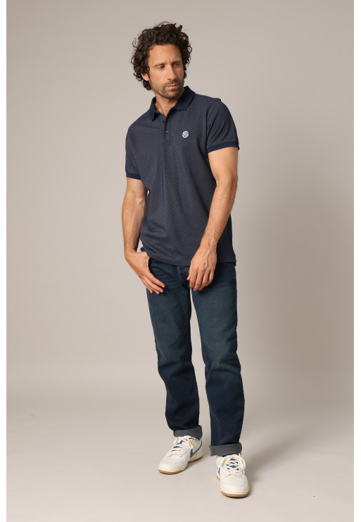 This men's polo shirt combines a classic cut with a refined micro-print pattern for a look that's both modern and timeless. Featuring a flat knit collar and short sleeves trimmed with a tone-on-tone border, it features a discreet embroidered badge on the chest, adding a touch of authenticity. Perfect for structuring a casual outfit with jeans or chinos, it's available in several colors for a variety of styles without ever losing style.