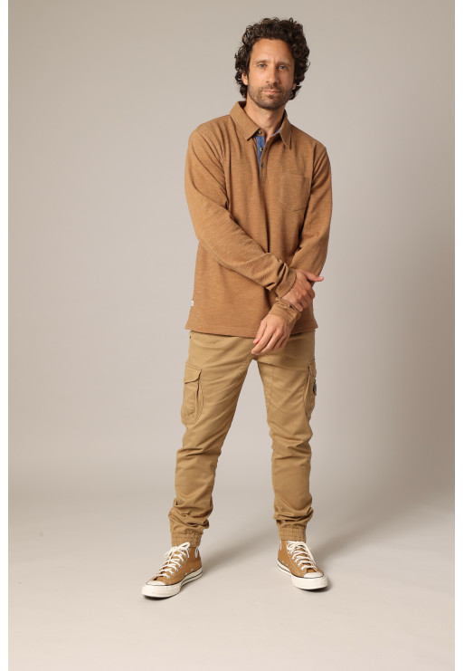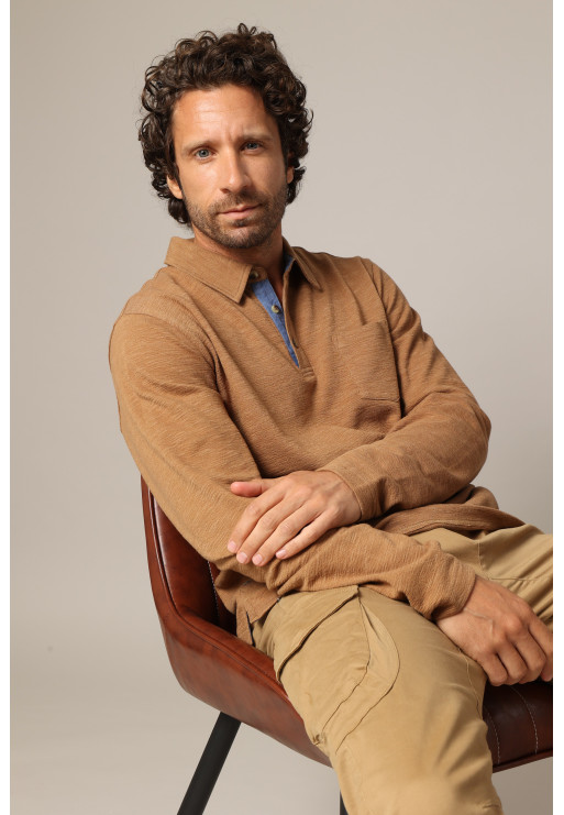 The long-sleeved COLONEL polo shirt revisits the casual look with a subtle touch of refinement. Featuring a discreet chest pocket and a contrasting button placket inside the collar, it combines comfort and attention to detail. Its slightly heathered textured knit adds texture while remaining understated, while its straight cut adapts to all body types. Available in several colors, this model can be worn with raw denim or cargo pants, for a look that is both urban and authentic.