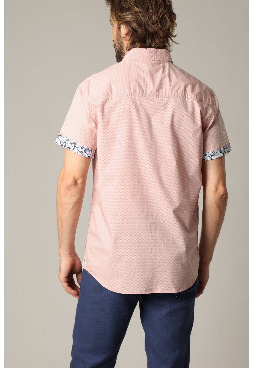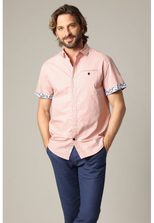 Short-sleeved cotton shirt with piped chest pocket and contrasting material at the bottom of the sleeves and inside the collar
