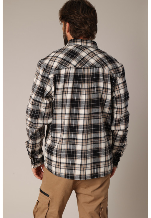 The plaid pattern adds a retro yet modern touch, perfect for a relaxed urban look.