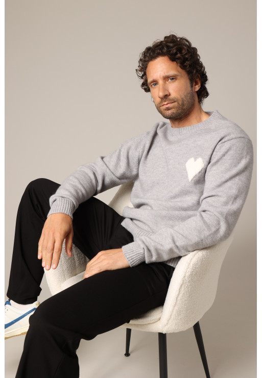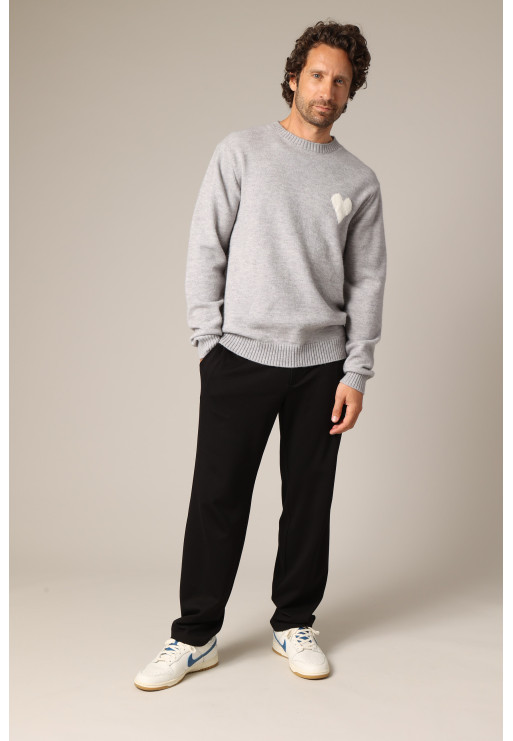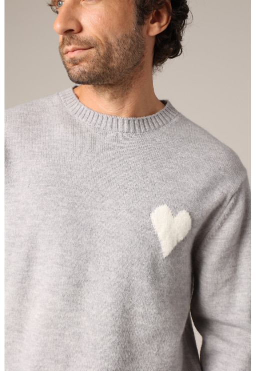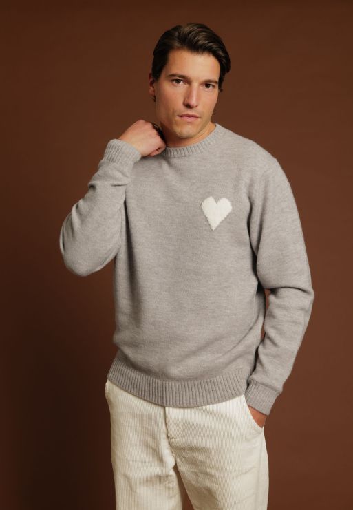 This casual sweater is designed for men looking for a soft and modern look. It features a comfortable straight cut, a ribbed crew neck, and a matching hem for a flawless fit. The signature detail? A large, contrasting heart knitted on the heart side, which gives it an original graphic touch. Comfortable and easy to wear, it's an essential revisited with style.