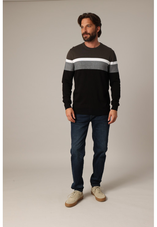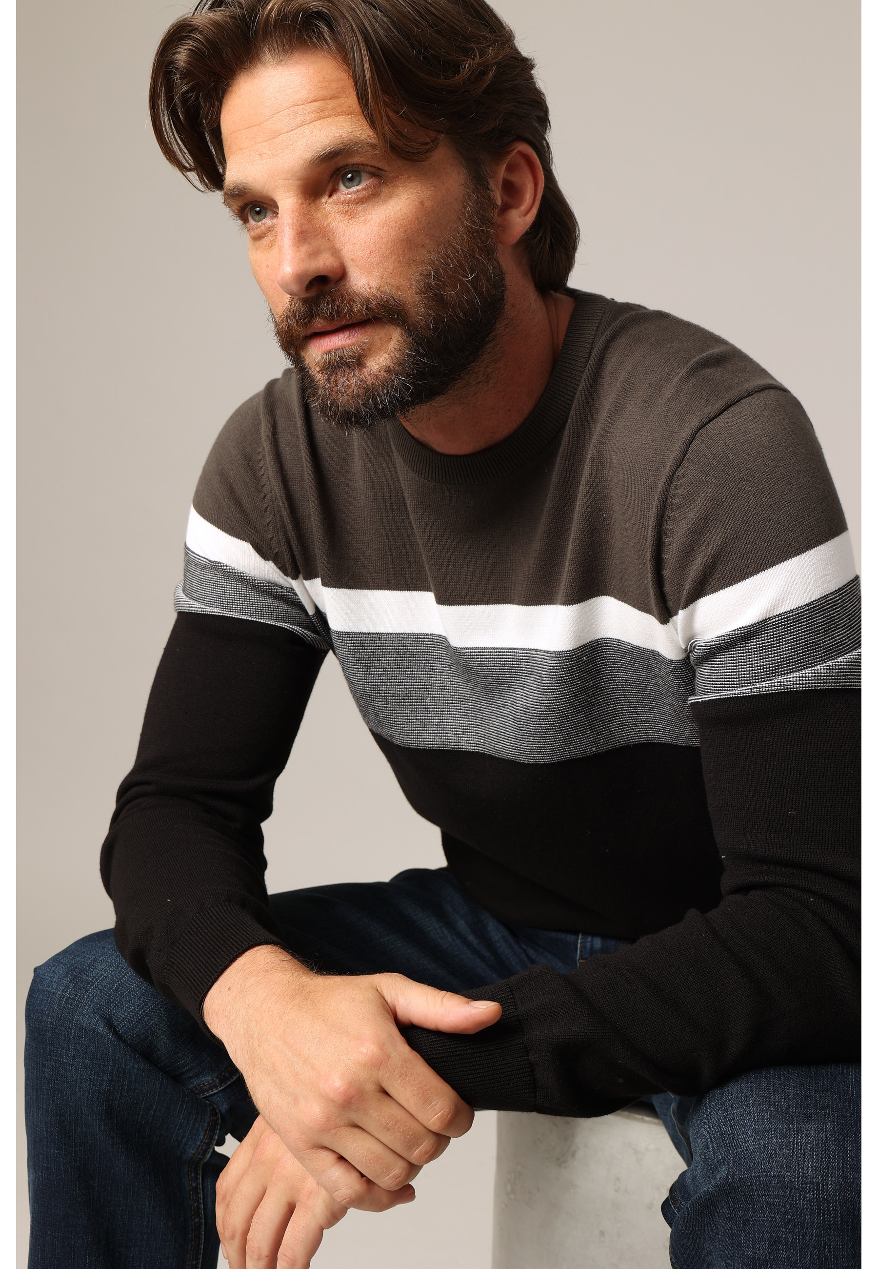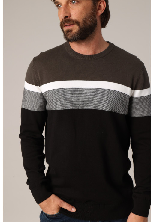 Comfortable straight cut, classic crew neck, ribbed trims, this model ticks all the boxes of a "not too sensible but not too crazy" sweater.
