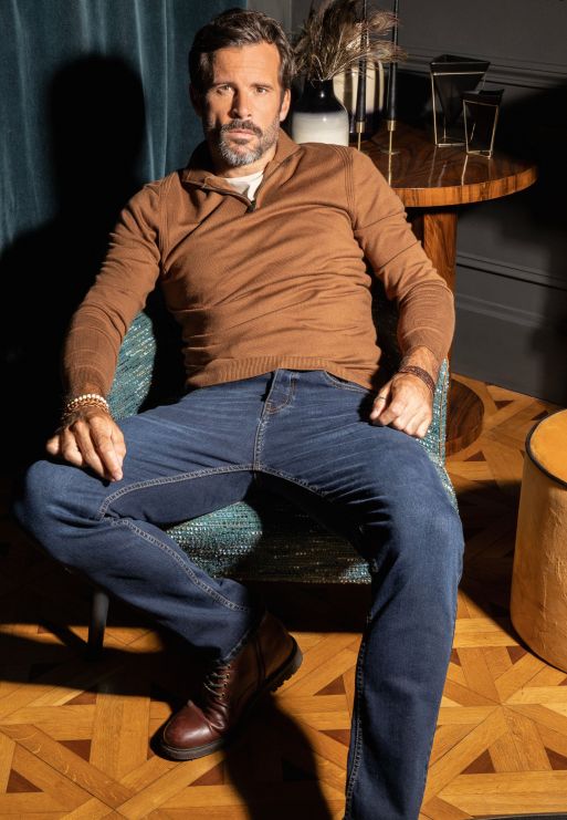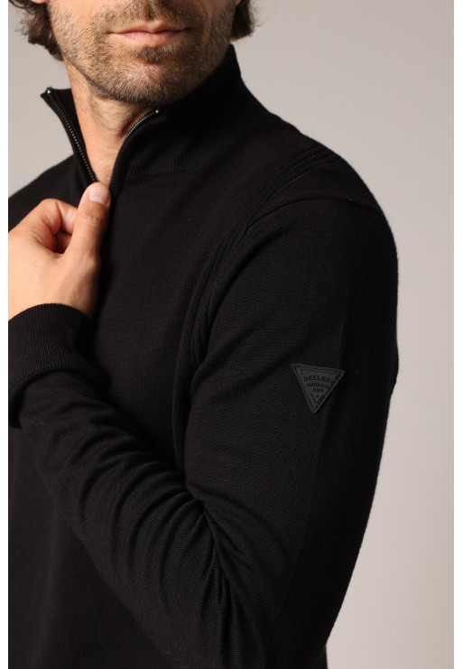 Men's sweater ALMANACH, with a casual and comfortable style, made of fine and soft knit. This model features a zipped stand-up collar that adds a modern touch while allowing you to adapt the opening as desired. The straight cut and ribbed finishes ensure a clean and structured silhouette. A discreet patch is sewn on the left sleeve for an elegant urban touch.