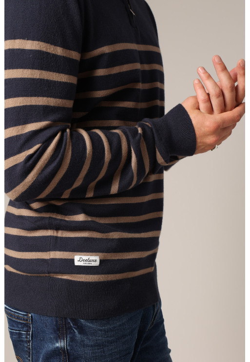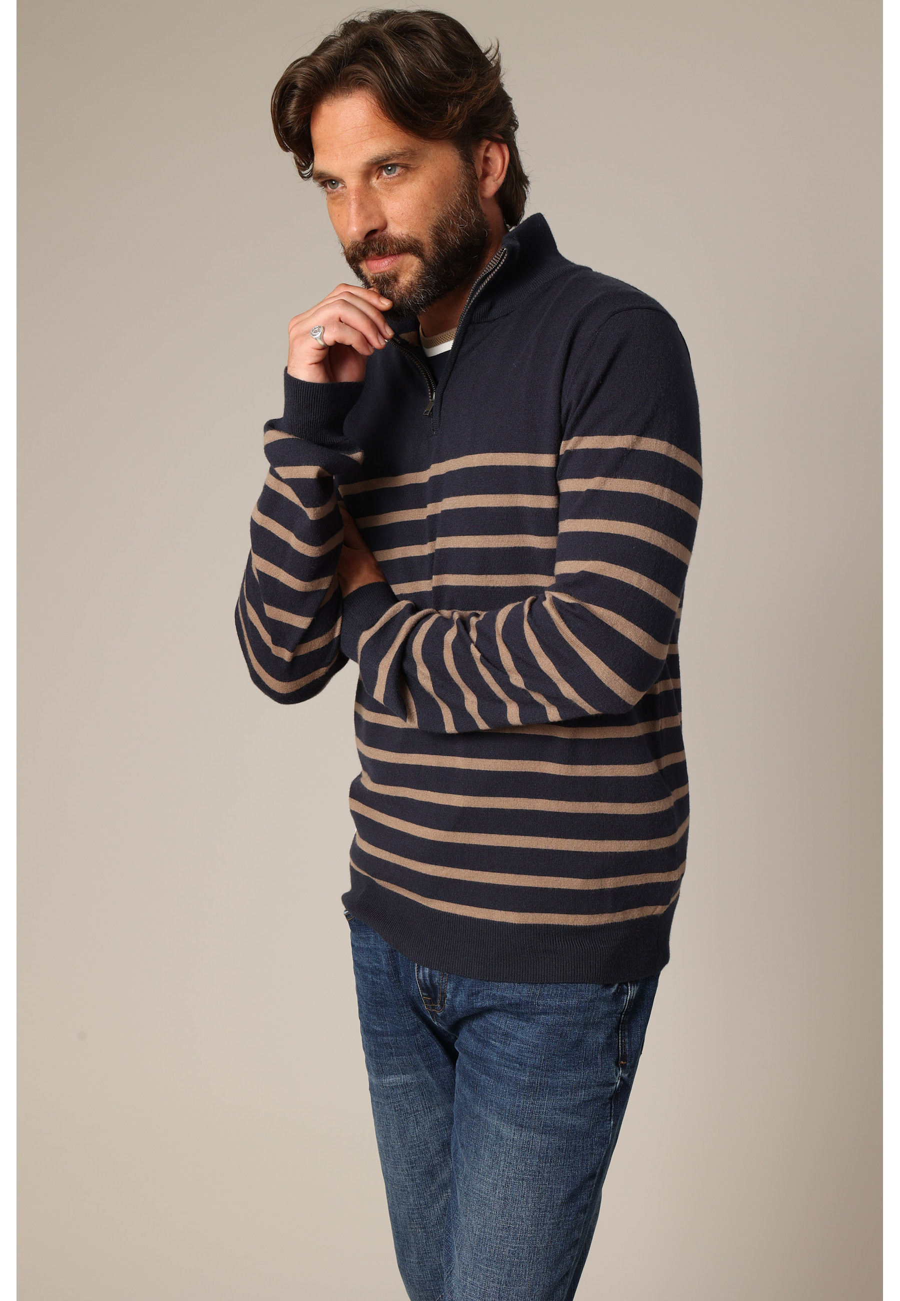 This casual zip-up high-neck sweater seduces with its revisited nautical style.