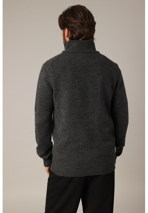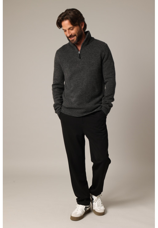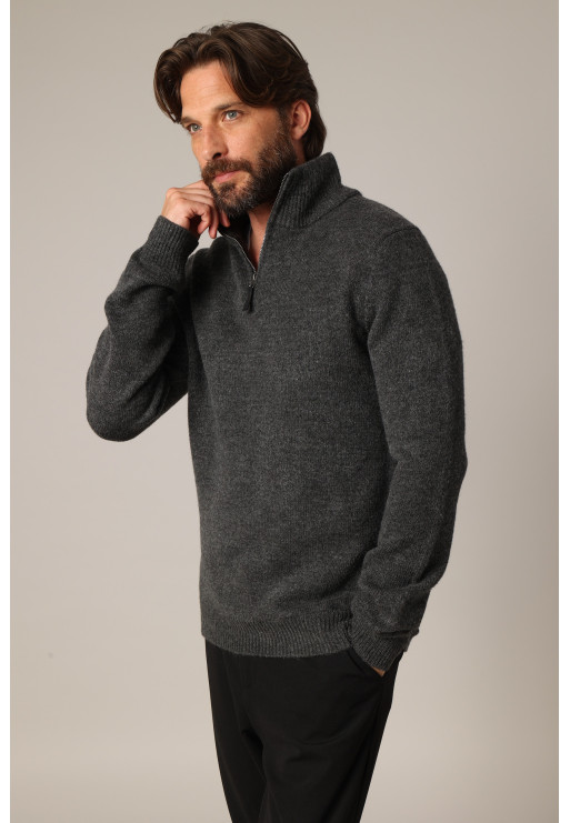 This zip-up sweater with a high neck is an essential piece for men's casual wardrobes. Made from a soft, slightly fluffy knit, it's comfortable and understated. Its straight cut and ribbed cuffs and waistband give it a sleek, yet casual look.