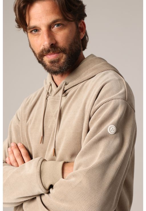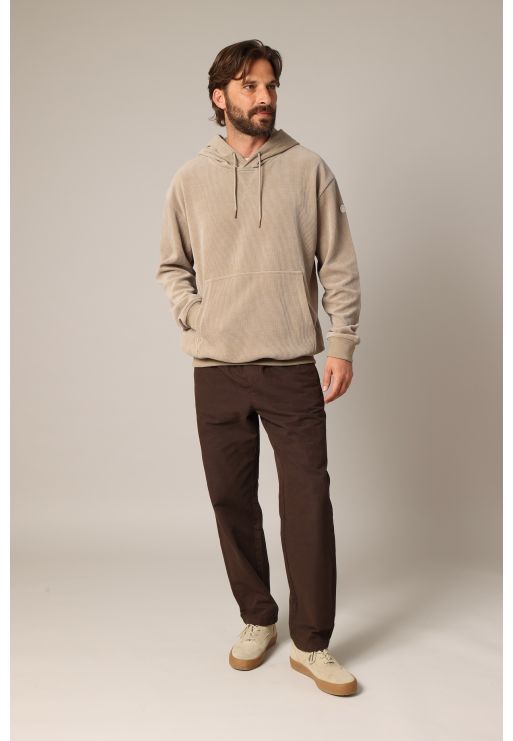 Hood with drawstrings, a practical kangaroo pocket, and ribbed trims: the details are meticulous, the fit is relaxed, and the style is 100% cool.