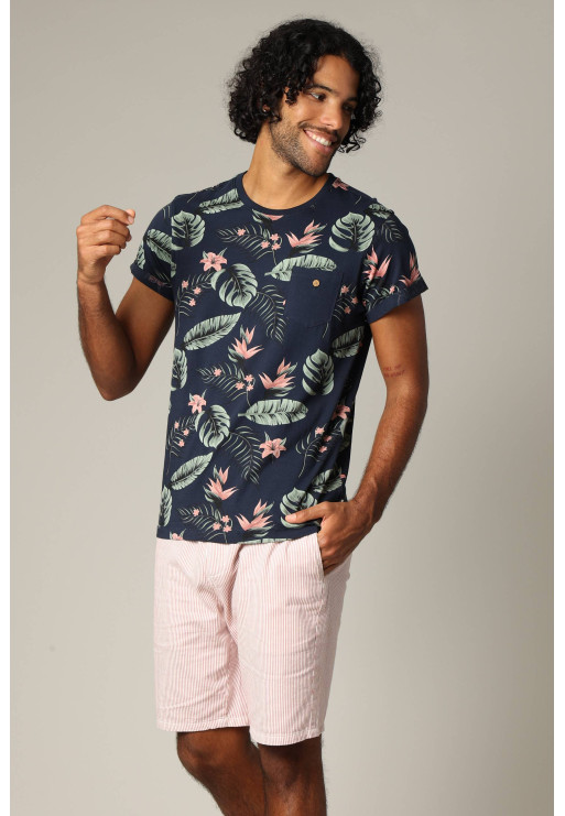 The NUBIE T-shirt features a discreet tropical pattern combined with a plain, buttoned chest pocket. It's a basic to have in your wardrobe to enjoy a little holiday feel every day. It's a simple but elegant garment, available in several colors.