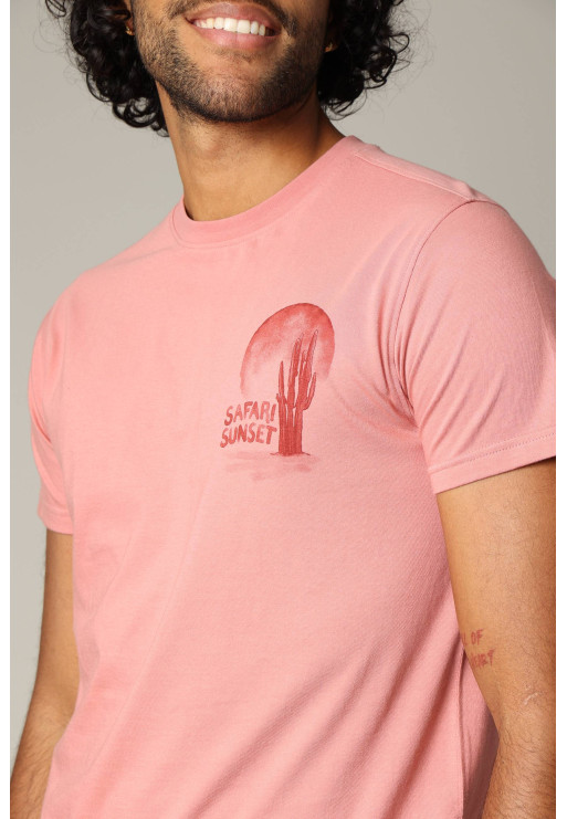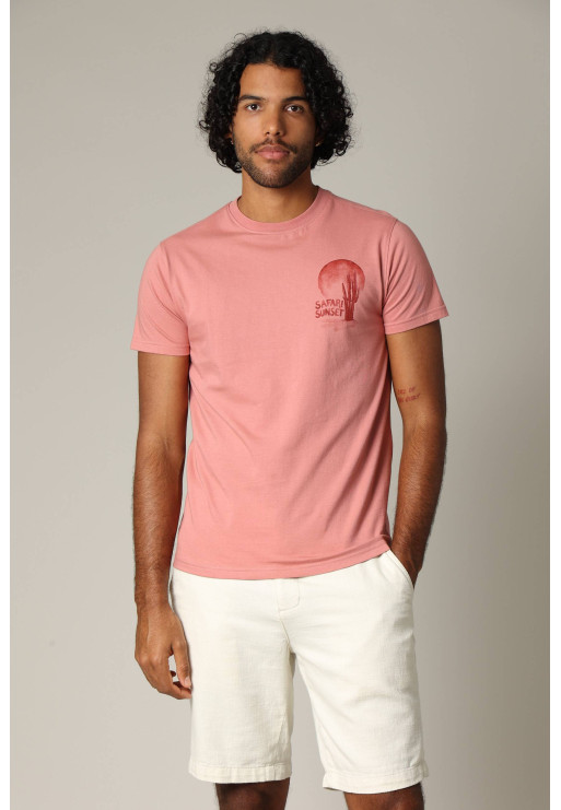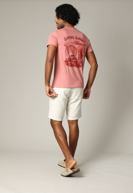 The SAFARSUN T-shirt is a basic that has been revisited with a very designer side. It displays a small graphic on the chest that recalls the large graphic on the back. These represent a vacation scene that makes you want to escape.