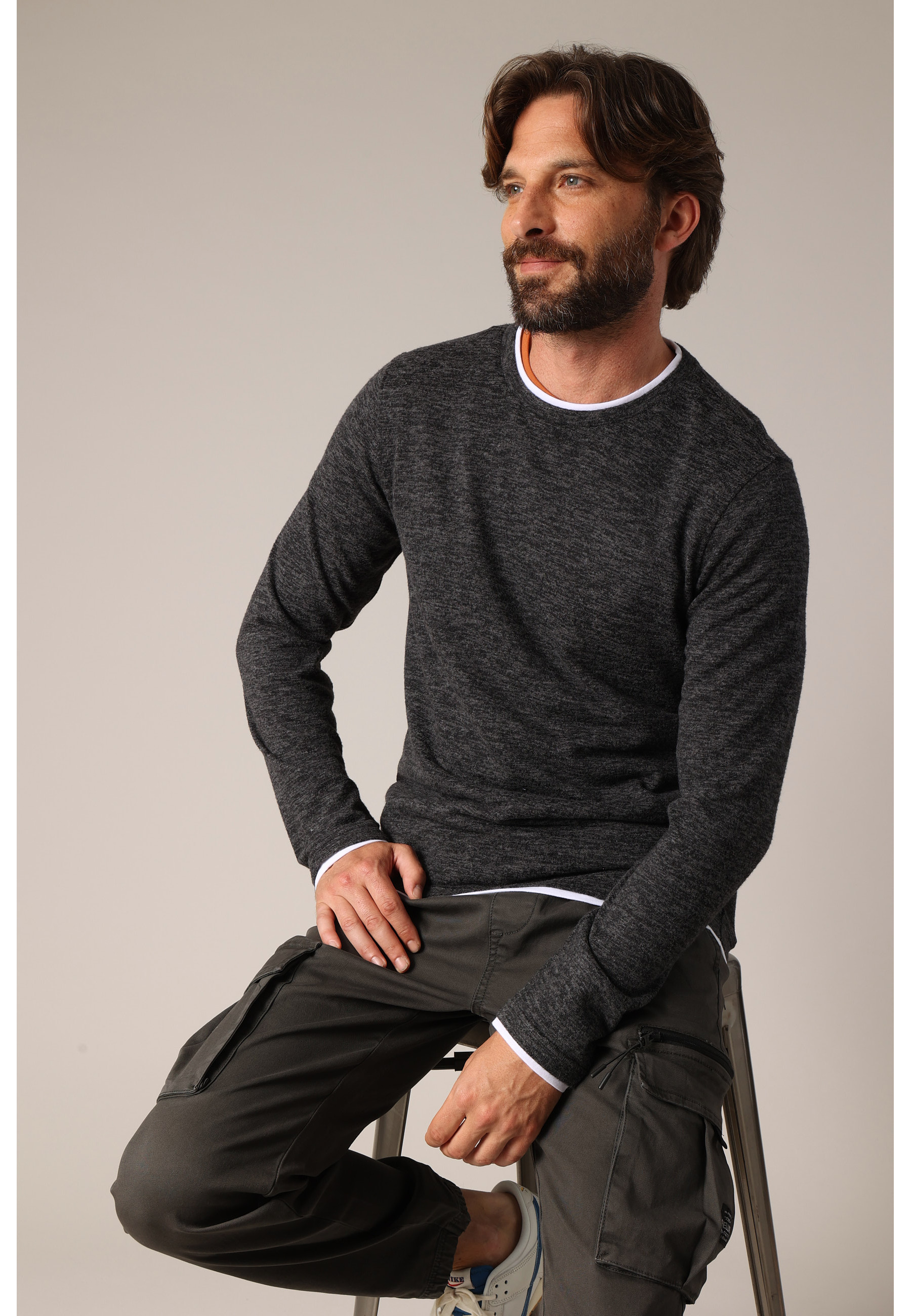 Designed for men who appreciate comfort without compromising on style, this MONAN sweater stands out with its subtly heathered knit, its fitted cut and its round neck edged with a contrasting border. The finishes at the cuffs and hem are clean, elegant and discreet, perfect for creating a silhouette that is both understated and modern. Paired with raw jeans or cargo pants, it adapts to all desires. This model is available in several timeless colors to vary your looks throughout the seasons.