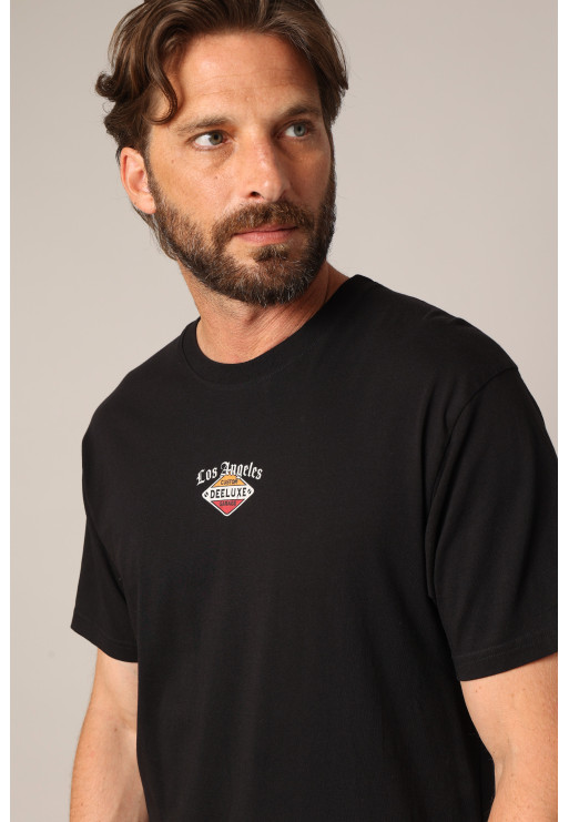Crafted in comfortable cotton, this men's style features a classic straight cut, a crew neck, and short sleeves. But it's the back that really shines: a spectacular print depicting a winged motorcycle with the lettering "Los Angeles Deluxe Speed Shop," inspired by a Californian riders' club.