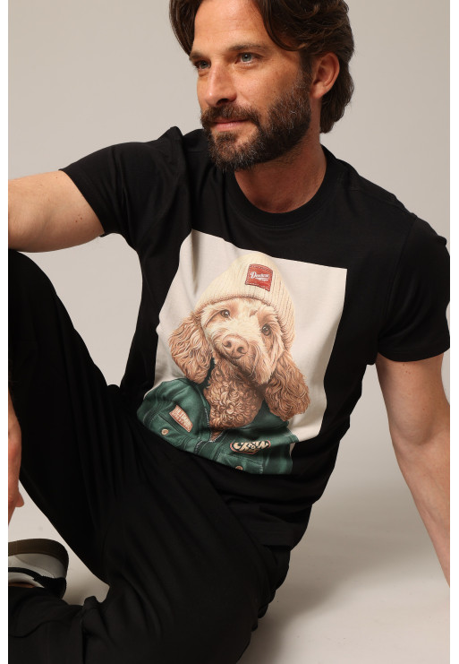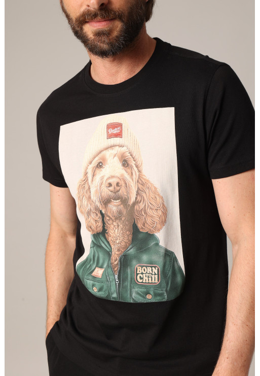 Men's T-shirt with a casual style, the CABO model features an original illustration of a dog in a Born to Chill outfit on the front. Made from 100% cotton, it combines comfort and originality. This short-sleeved t-shirt has a classic straight cut with a round neck and a label sewn on the back of the collar. Perfect for asserting a casual style with a touch of graphic humor.