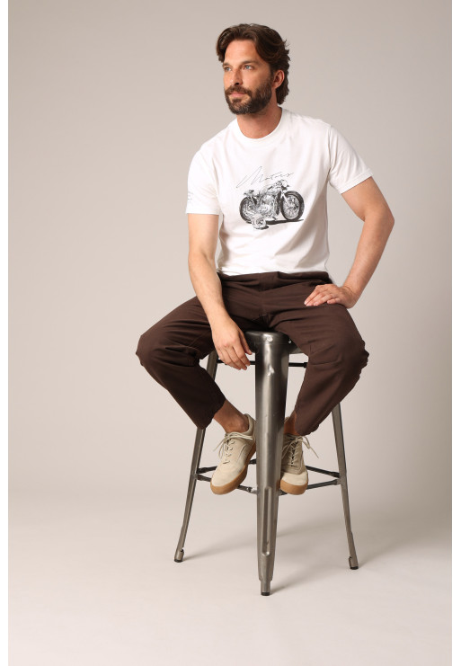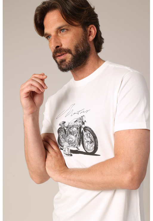 Retro style motorcycle print T-shirt, round neck and straight cut.