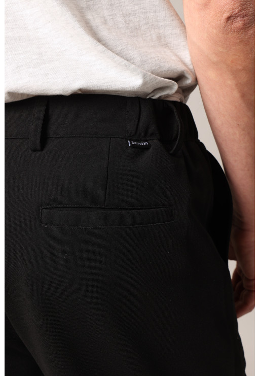 They feature an elasticated waistband with drawstring and belt loops, two side pockets and two piped pockets on the back.
