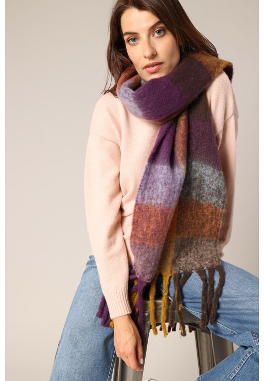Play with shades in a soft way with this wide checked scarf. Its fluffy material offers a soft touch and an enveloping sensation, perfect for facing cool days.