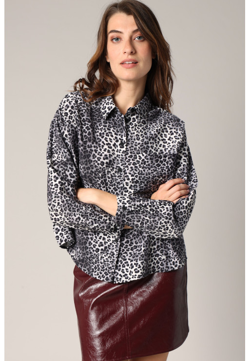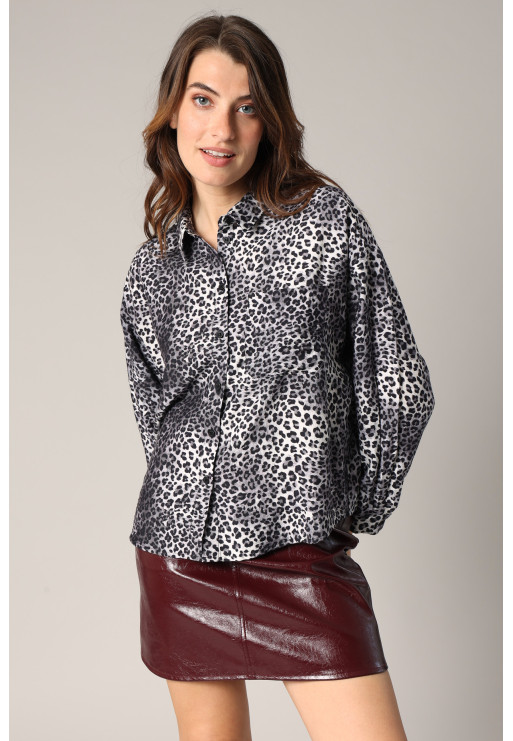 The SAVANY shirt revisits animal print with a leopard print. Its loose fit and puffed sleeves create a lovely volume, while the shirt collar and button placket provide a touch of structure. Fluid and comfortable to wear, this style adapts easily to a casual or more formal look. Wear with leather pants, a straight skirt, or jeans for a trendy look.