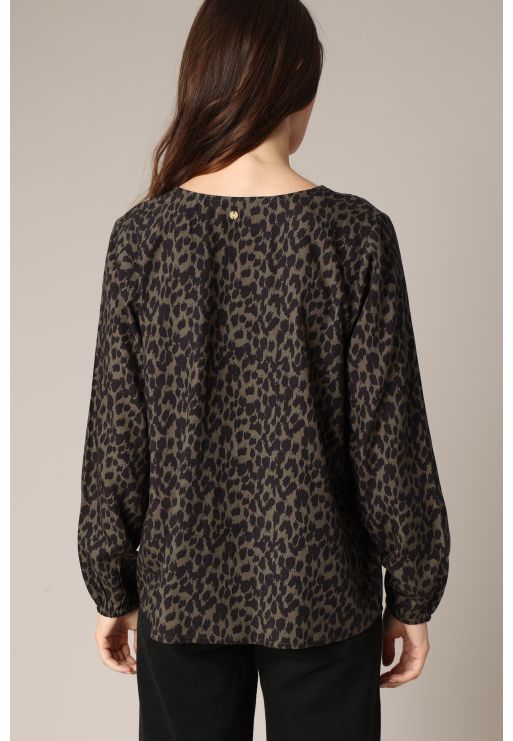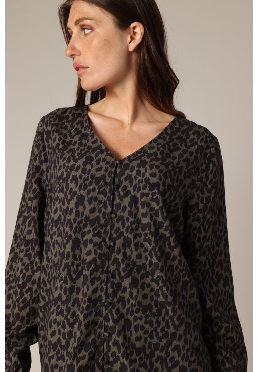 Flowy blouse with leopard print and V-neck