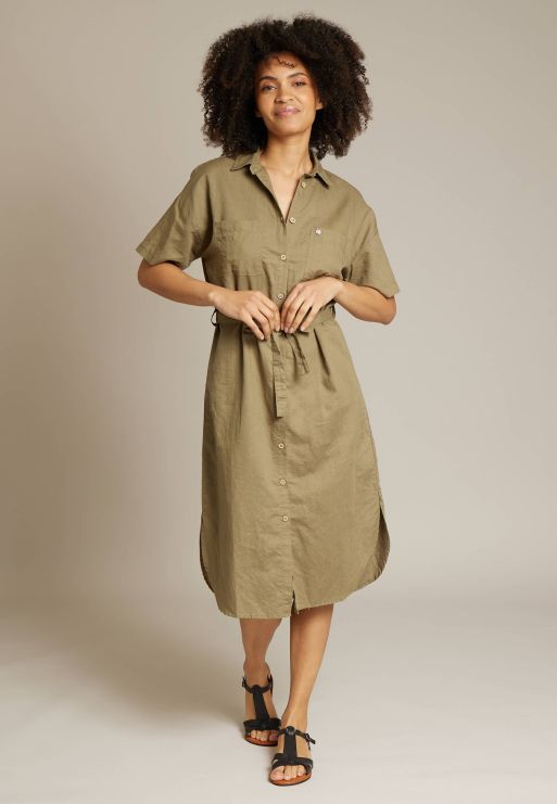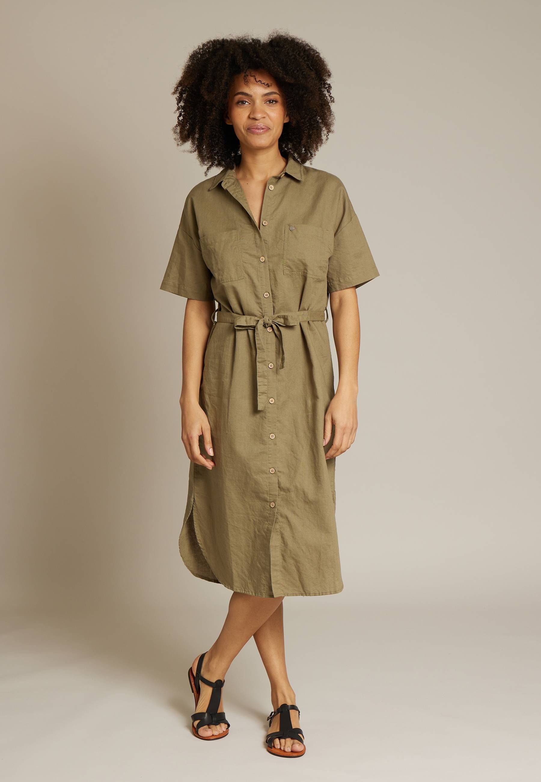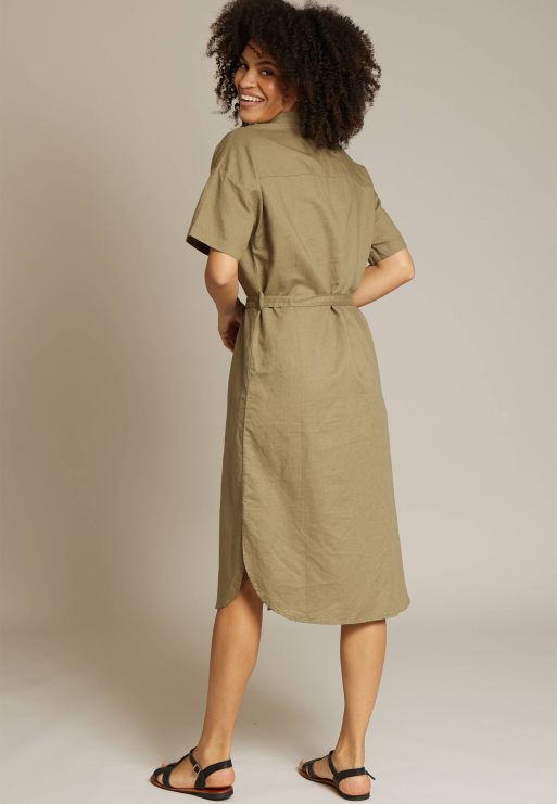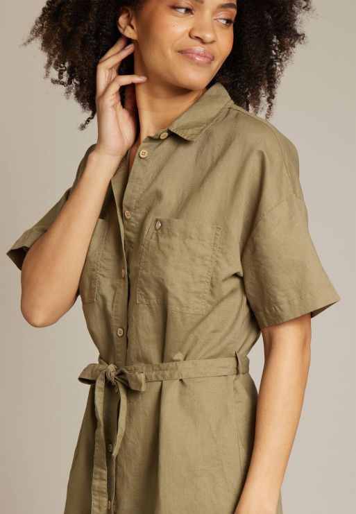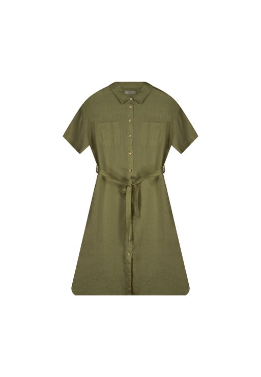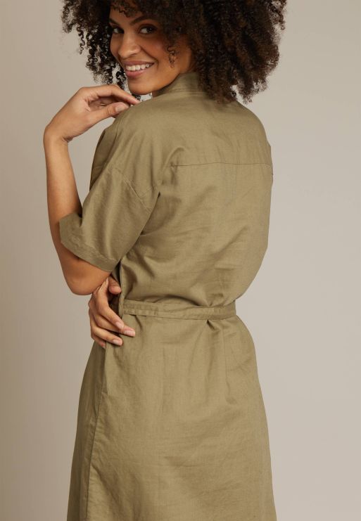 LINEN SHIRT DRESS WITH SHORT SLEEVES