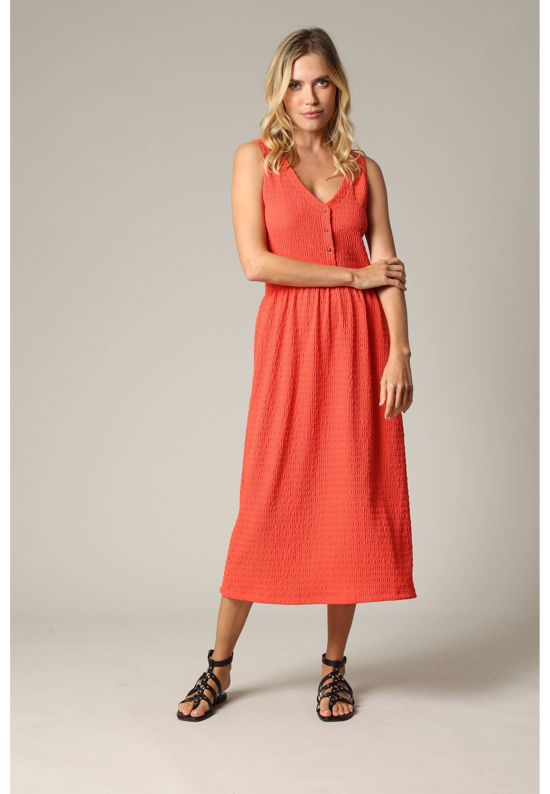 Our sleeveless dress Aria is made from a soft, flowing waffle fabric that adds comfort to your outfit. Its delicate texture brings a touch of originality to this garment.