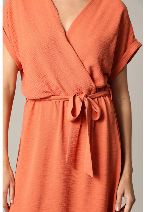 Plain casual dress with short sleeves and a wrap collar