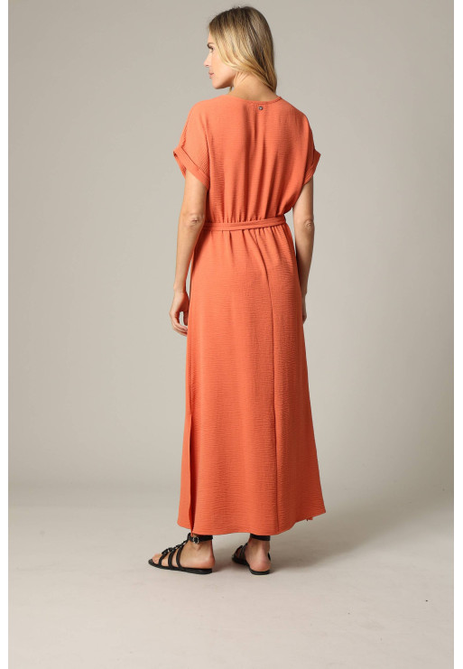 The TEYSSA long dress is the perfect definition of a casual dress. Available in three colors, beige, khaki or coral, it offers a simple and elegant design while maintaining the comfort of a loose and long dress. Perfect for spring and summer, it highlights your look thanks to the nicely tied bow at the waist. The wrap collar adds a touch of style to this must-have piece.
