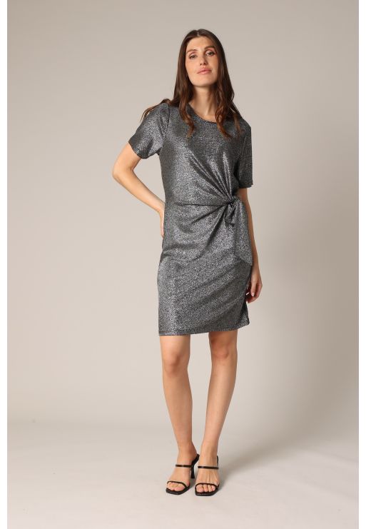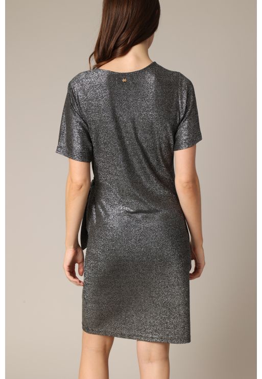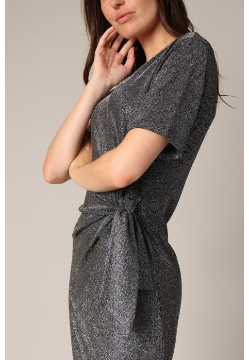 The SHINYSE short jersey dress embodies elegance and comfort to perfection. Its straight cut and slightly iridescent fabric subtly capture the light. Its waist is accentuated by a tie, adding structure and femininity to the silhouette. The short sleeves and round neckline reinforce its minimalist and chic look. Perfect for a special occasion, it combines comfort and elegance with great simplicity.