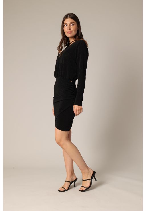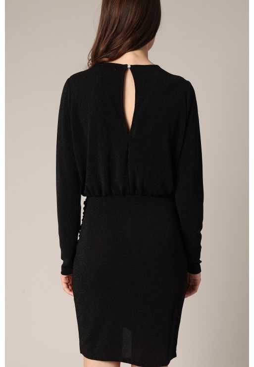Short sequinned dress with long sleeves and gathered waist