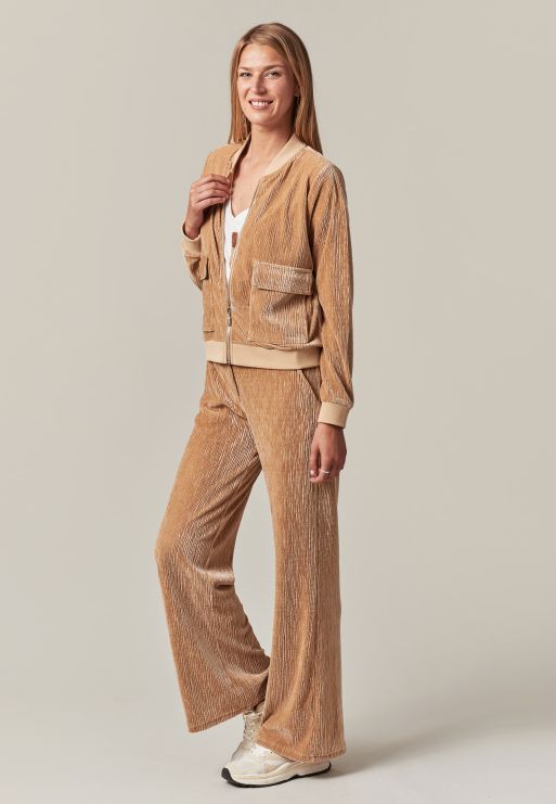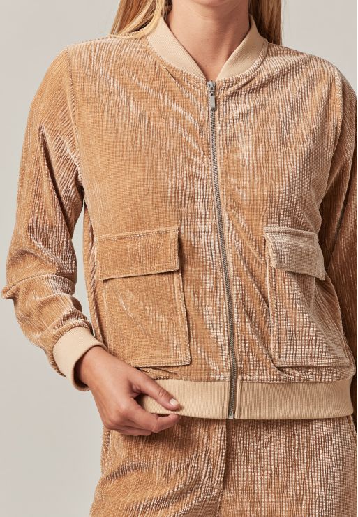 This corduroy jacket features a blousy cut that hugs the figure, offering both comfort and style. The two large flap pockets add a practical touch while harmoniously structuring your look.