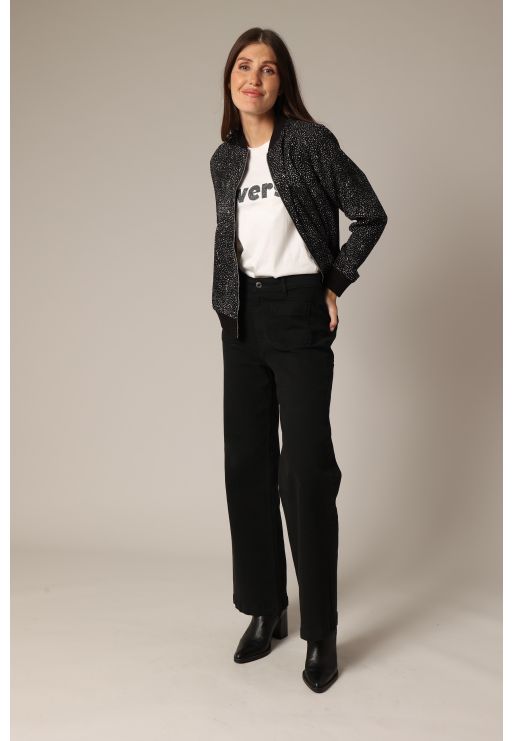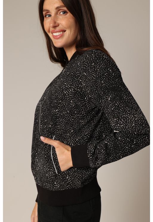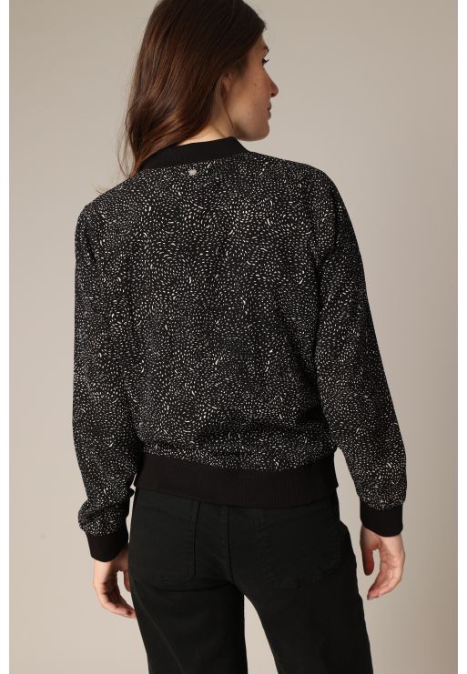 The discreet print made up of small white touches on a black background adds dynamism to the silhouette while remaining understated.