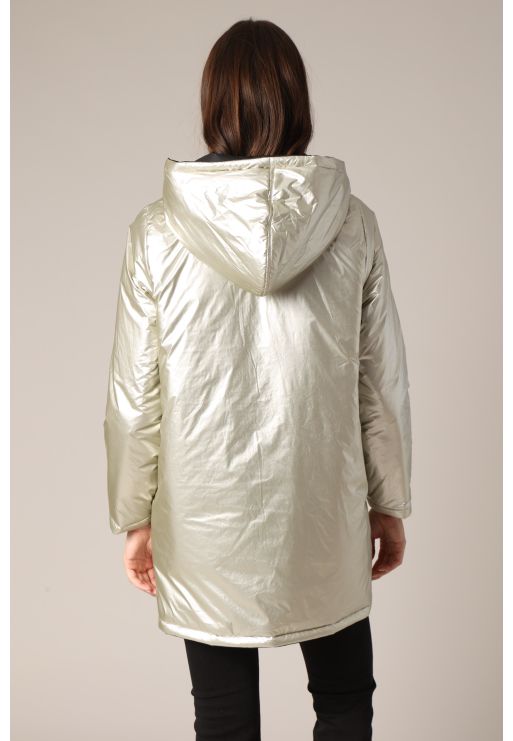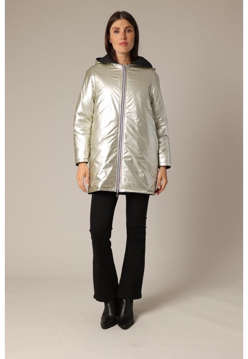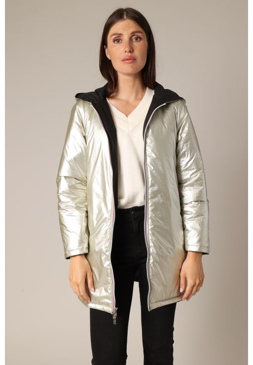 Reversible, it alternates between a futuristic metallic side and a chic understated side, depending on the mood of the day.