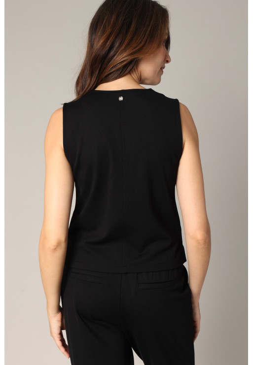 Sleeveless vest with classic buttoning and piped pockets.
