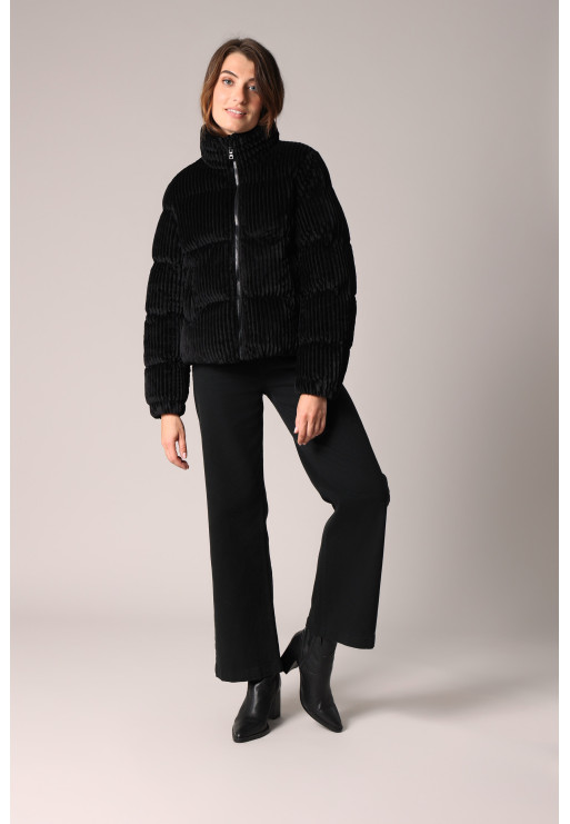 The NOELIA short puffer jacket revisits the puffer jacket in a vintage-inspired version. Its pattern adds a textured and warm touch, while its stand-up collar and enveloping cut make it ideal for cold days. Fastened with an invisible zip and featuring side pockets, it prioritises comfort without compromising on style. Wear it with raw denim jeans or high-waisted trousers for an ultra-cosy and modern winter look.
