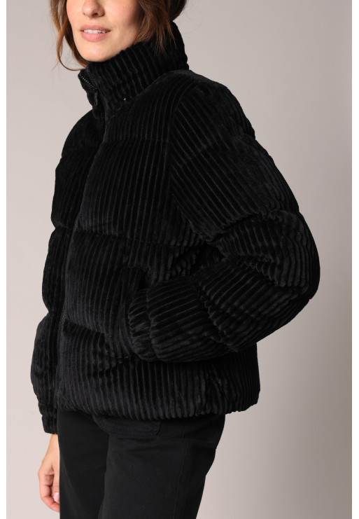 Short puffer jacket with stand-up collar and zip fastening