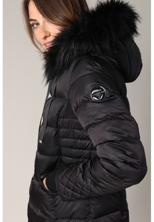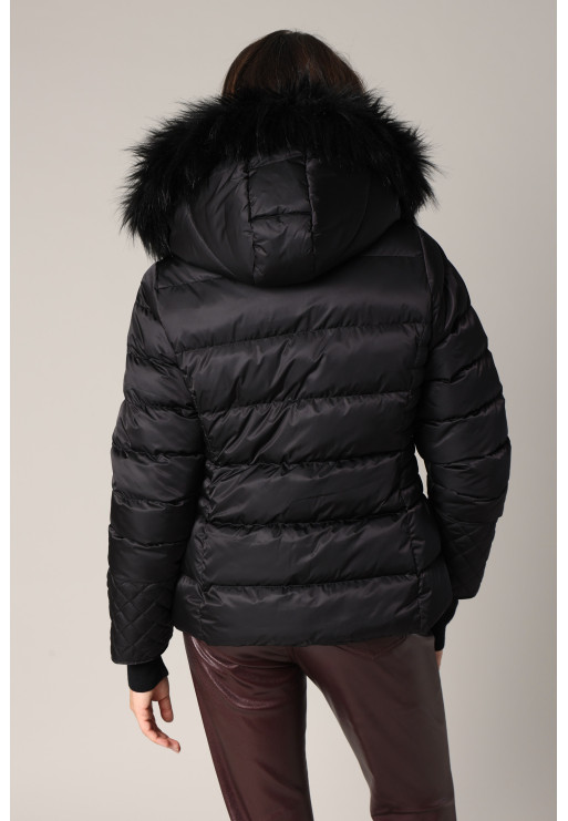 Quilted down jacket with faux fur hood