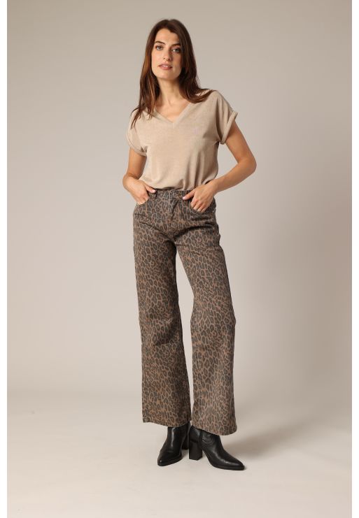 These 100% cotton flared pants feature a bold leopard pattern for a bold, on-trend look. Their flared cut from the knee elongates the silhouette and adds a retro-chic touch.