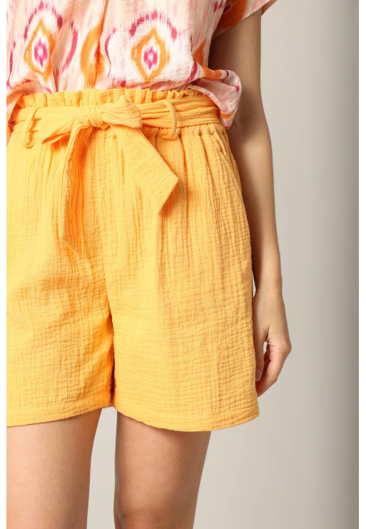 The SHYLA model is a must-have short for the summer season. Made from lightweight cotton gauze, it is designed to offer you optimal comfort while being stylish. Its elasticated waistband and tie belt allow for a personalized fit, perfect for all body types. Available in white, black and bright yellow, these shorts are ideal for your casual days or your summer festivals. Pair it with a flowy top and sandals for a boho chic look.