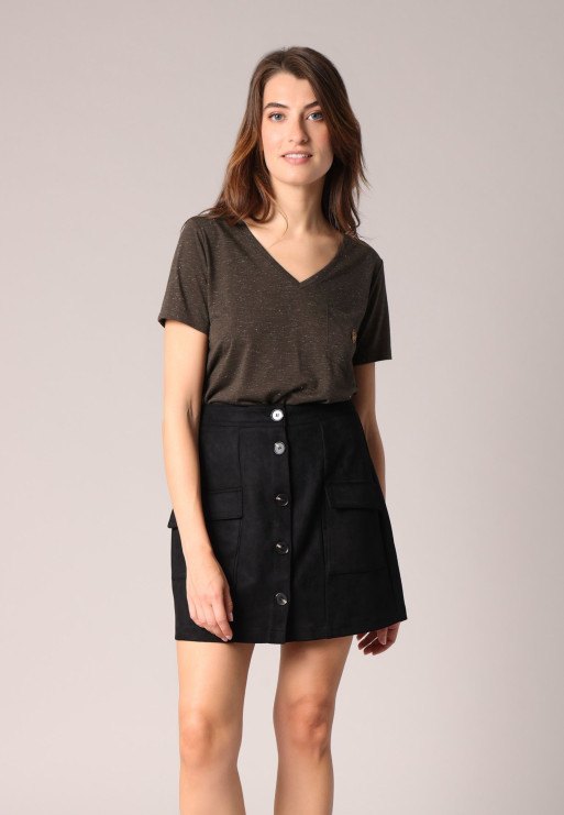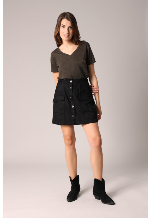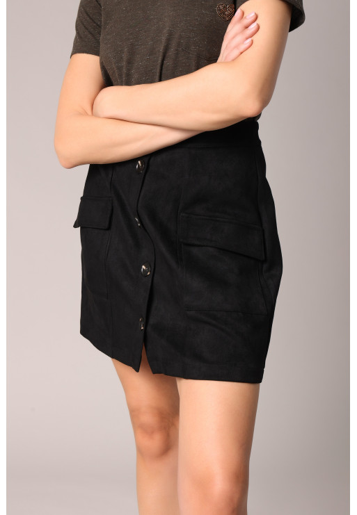 Short suede skirt with patch pockets