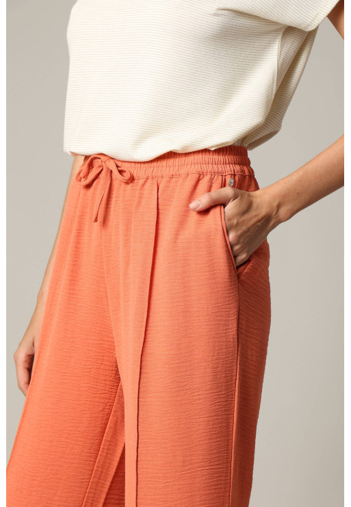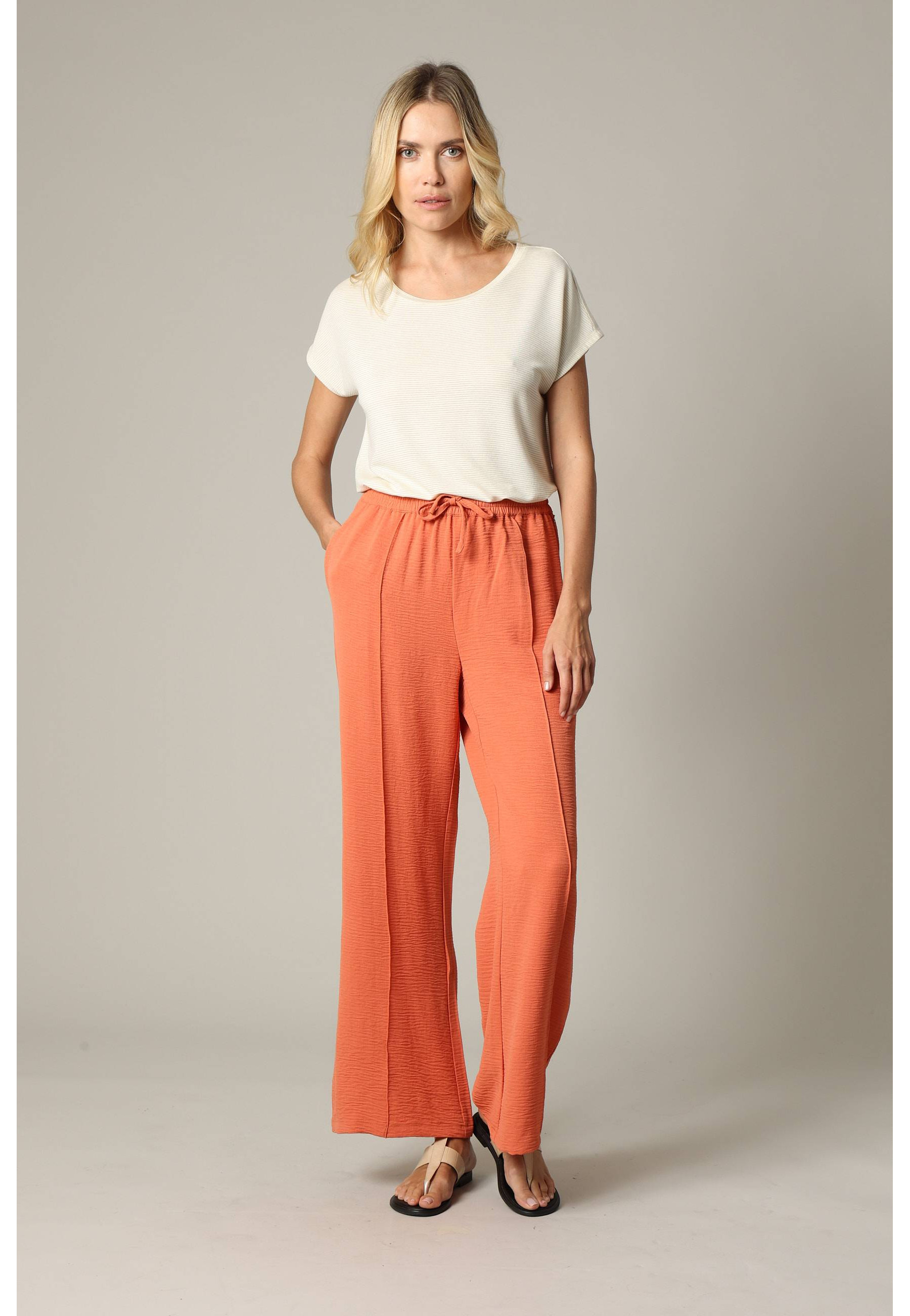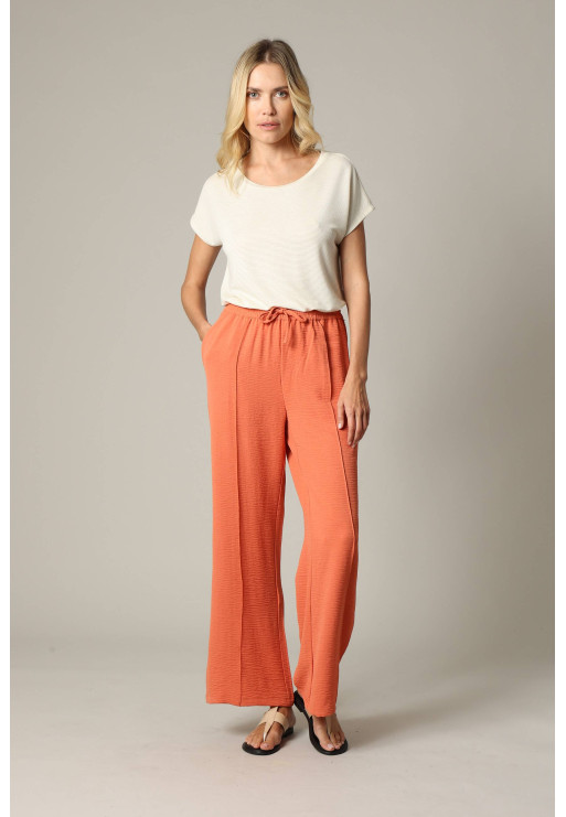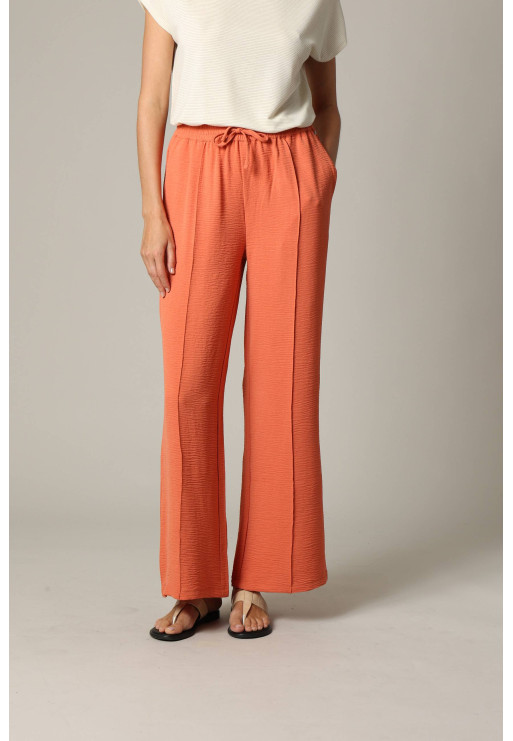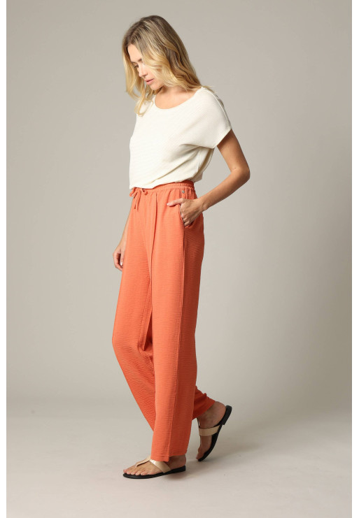 Fluid pants in textured fabric with elasticated waist and double vertical stitching
