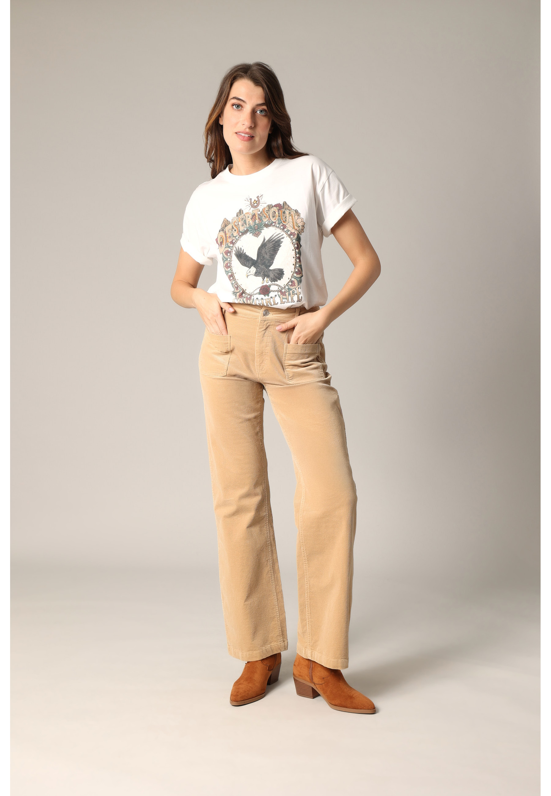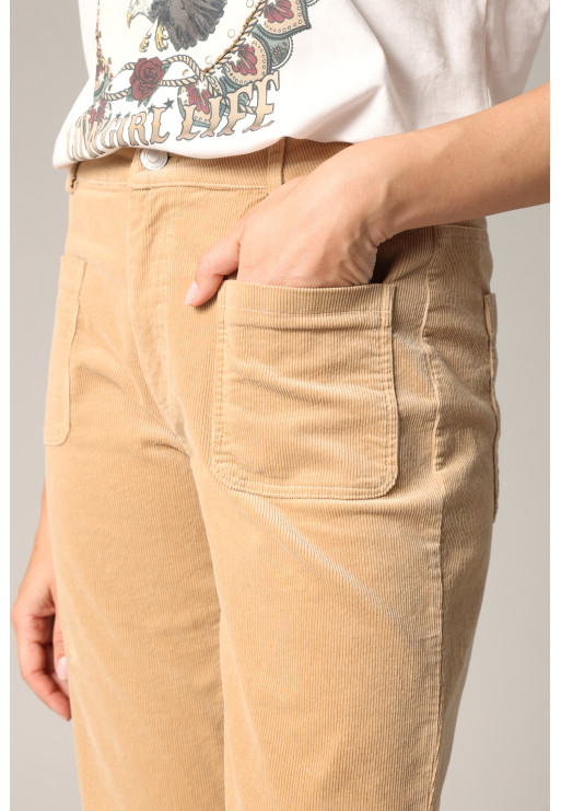 The SAKARI flared pants evoke the softness of autumn in the city and the charm of revisited vintage. Their flared cut elegantly flatters the figure, while their corduroy material gives them a textured relief and a cozy feel.