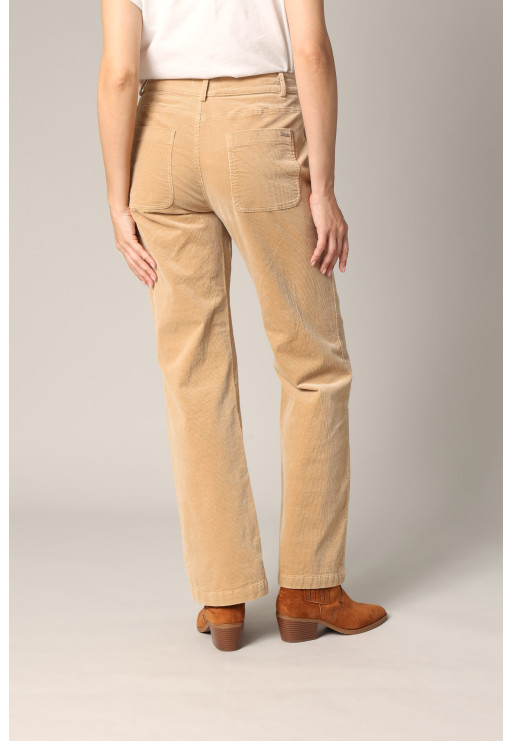 This women's model stands out with its high waist, patch pockets on the front and back, and a decidedly retro-chic look. Both comfortable and structured, they pair just as well with boots as with sneakers. The SAKARI pants are available in several colors.