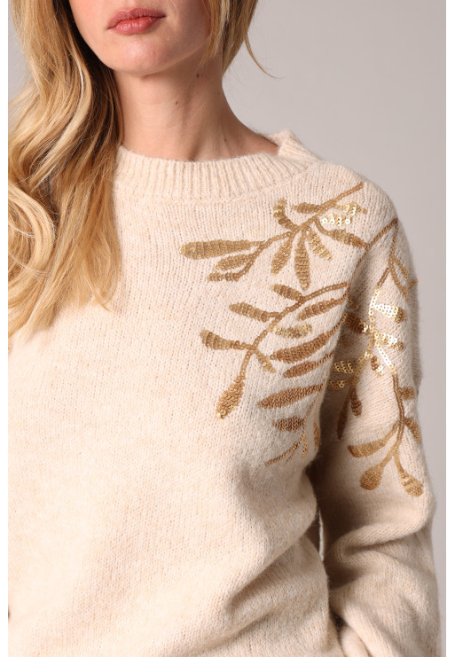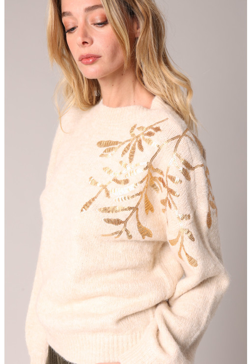 Knitted sweater decorated with floral sequin embroidery